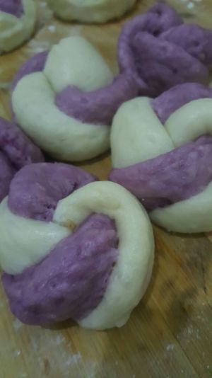 继续揉面团,用擀面杖擀好平铺,像叠被子叠好,再擀一遍,卷起来,切好均等分,再次发酵,拿起来轻盈,放锅里蒸大火15分钟即可!蒸好盖锅里5分钟开锅,完美