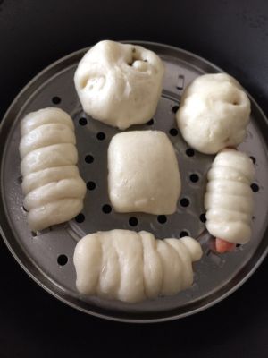 将松弛好的面团根据自己喜欢整出造型,也可以直接是馒头形状,这次我花了一点心思做成了刺猬的样子,很讨喜,做好结果全家老少都喜欢吃呢。做法分享下,面团前端稍微搓长,整成刺猬的头部,然后按上2个红豆做眼睛,表面用剪刀剪几道就是刺猬的雏形了。
