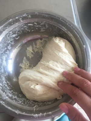 打开看一下,当面粉发胀至原来的1.5至2倍,用手拉扯有蜂窝状小气泡,即为醒发成功