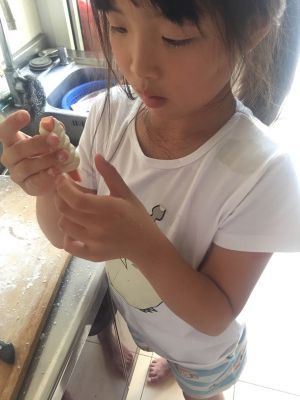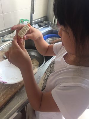 来一个花式的玩玩,面擀圆,切图,两个捏一块