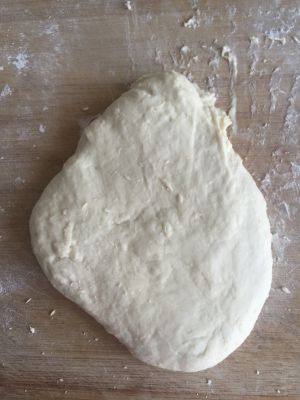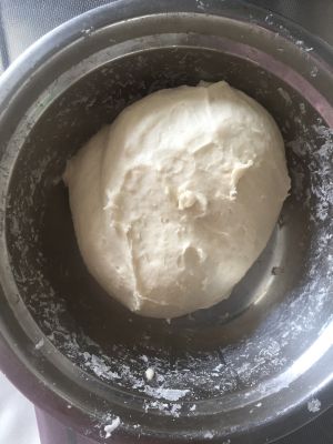 如此揉了醒,醒后揉反复2至3次,取出面团准备做包子,砧板上要撒一层面粉,防止粘粘。