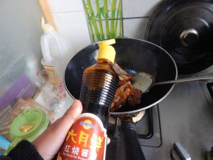 把红烧汁倒入锅中同排骨一起翻炒均匀,顿时香气扑鼻而来,陶醉在其中~