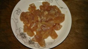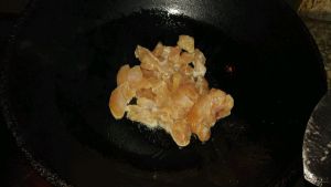 放腌好的鸡丁(鸡丁放少量盐、淀粉、用油封一下免得干)