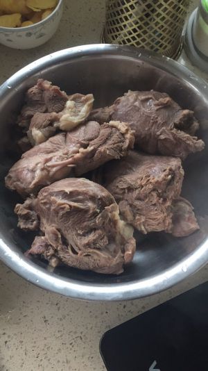 同样的做法我另一口锅煮了羊肉、羊肉不能煮的太过我用高压锅压了十分钟、普通锅的话应该在一个小时左右、用筷子插进肉里、没有血水即为煮熟。然后捞出来晾凉。