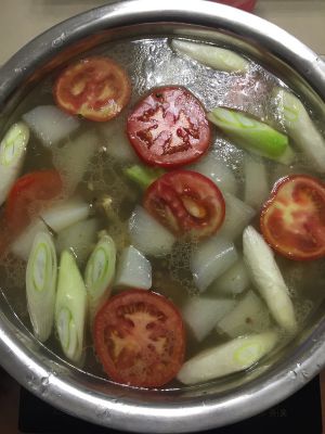 煮至一定时间(至少三十分钟后),加入白萝卜