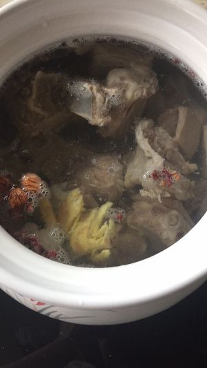 棒子骨炒血水一次,捞起放入砂锅,加水,炖15分钟以上