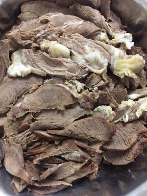 煮过三四十分钟后劳出切片,我一般是边切边煮。瘦肉纹路成网状。肉质口感才好。纹路成条状。肉质就不宜嚼碎。(这是清汤羊肉锅,如果是红汤就要另外架锅,放入色拉油,一包火锅底料,炒散。加入清水,或者本身的羊肉汤)