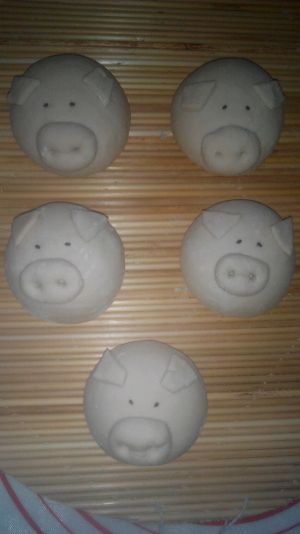 小猪馒头坯(玫瑰花及圆形馒头生坯忘照了)。