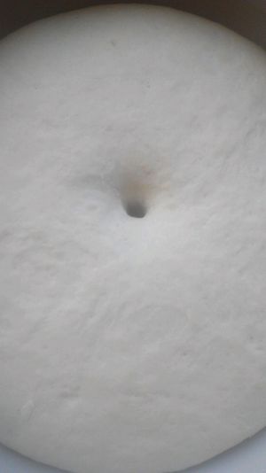 发酵好的面团用手指沾面捅个空,不塌陷不回缩。