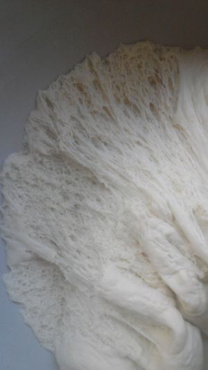 取少量面粉放入滤出的酵子水中。(可直接用酵子水和成面团发酵,但为了更好吃可多兜几遍面糊。)