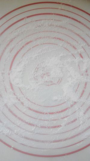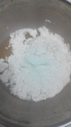 取适量碱放揉面垫上。(我凭感觉放的,没称。)