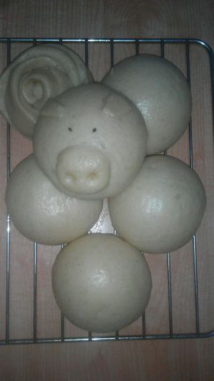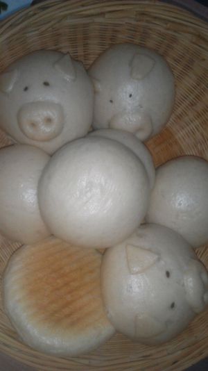 成品:小猪馒头、圆馒头,玫瑰花馒头。