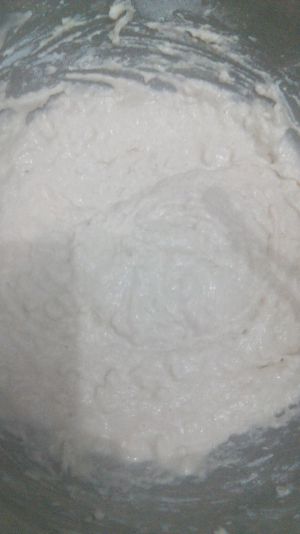 南瓜泥 、面粉和酵母混合,加入牛奶搅拌均匀