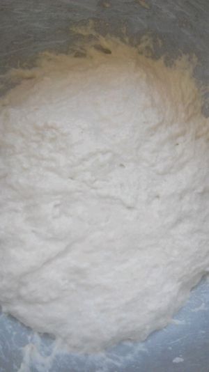 另外一份紫薯面粉直接加酵母粉,白糖,加温牛奶搅拌均匀和面,不干不稀哈