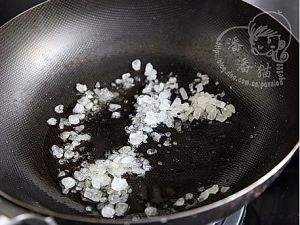 锅里放一点点油,放入冰糖,用小火炒糖色,火一定要小。