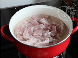 排骨凉水下锅,不盖锅盖煮开。用凉水是为了将排骨中的血水尽量煮出来, 不盖锅盖是为了让异味充分挥发。