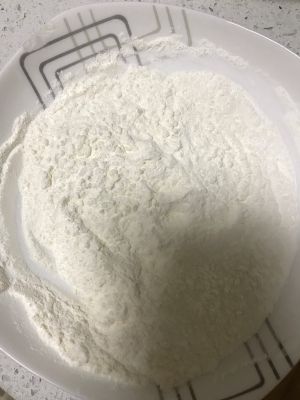 将等量的面粉和玉米淀粉、小苏打混合均匀,将一个鸡蛋打散备用。