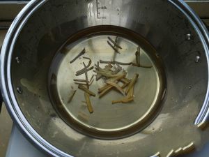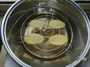 钢筋锅里加入水,放进去姜片,倒点料酒,架上篦子,螃蟹上面撒一些姜丝,起火,烧开后再挣15分钟,可以闻到弥漫的蟹香味了
