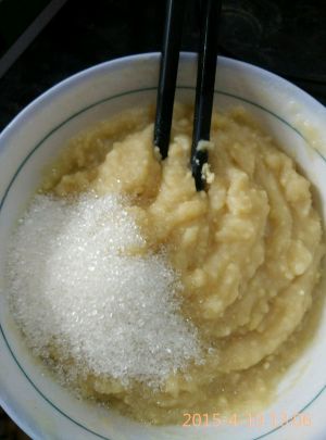 搅拌的差不多了加入白糖,根据自己甜度喜好,适量加白糖。搅拌好后就可以开吃了。