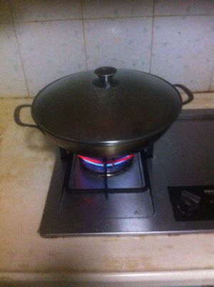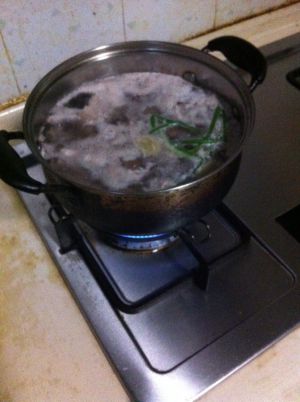 锅盖盖住,大火烧滚,大火保持烧20分钟左右,再改小火,继续烧35分钟左右。