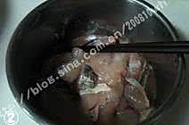 将超市帮斩杀好的草鱼清洗干净,特别是鱼腹内的黑膜,一定要刮干净,将鱼肉斜刀片出来备用;剩下的鱼头及鱼骨部分切段,煎制后煮鱼高汤备用;