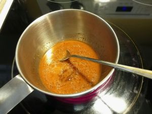 汤汁加热勾芡,这时可以调整咸度,加盐或者加水
