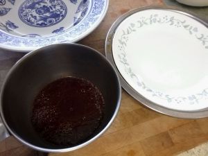小心烫,取出蒸好的扣肉,用一个大盘顶住碗口,先倒出里面的蒸汁,碗里的材料略放一会儿再扣到大盘上。这个步骤可以撒娇叫老妈来帮忙,让老爸站在厨房门口看,有助亲子间感情。