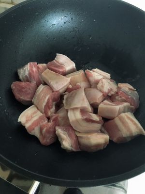 凉锅不放任何东西 我家都是不粘锅 中火放入五花肉靠出血水 我这个步骤不知道是否合适 但是我一直这么做 出一点水就倒掉 连续做到肉外表变色为止 大约五次