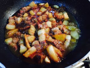 将腌制好的五花肉下锅炖熟即可,收汁出锅即可食用