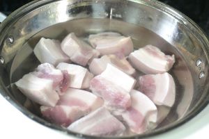 捷赛锅中加入冷水,然后将五花肉放入,盖上盖子