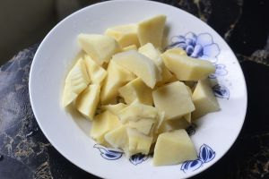 红烧肉切成3CM左右大小,笋事先用水煮过后切滚刀待用