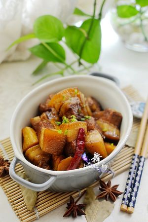 把买来的梅花肉红烧好,红烧肉方子有很多,各家口味也不一样,像我们家就喜欢吃这种比较清淡汤多一点的,所以红烧肉的方法我就不再多说。