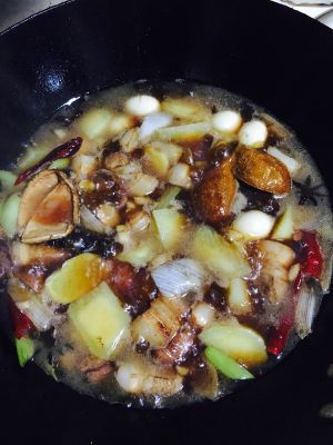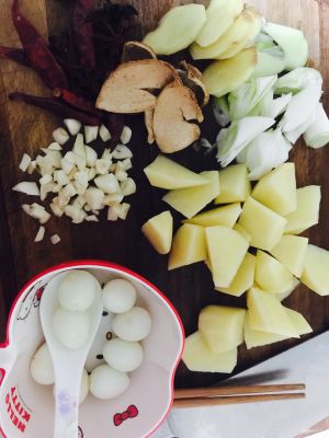 加入鹌鹑蛋,土豆,生抽,盐。炖半个小时。