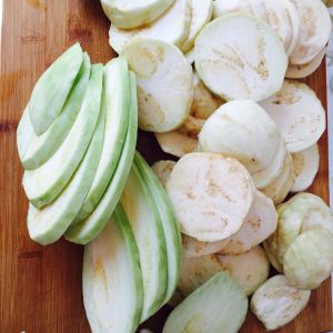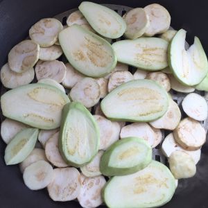 茄子去皮切片,越薄熟的越快。