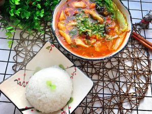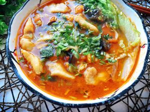起小火,把锅烧热,倒油,把大包得调味倒下去,轻微炒几下,放入适量得清水,把水煮开,先把鱼骨放下去,(买来得素菜如果是难熟得,比如冬瓜,黄豆芽)也可以放下去了,如果怕腥可以加点生姜。素菜好的差不多了,可以放鱼片了,鱼片不用煮太久了,变色了就可以把火关掉。这样肉很嫩得。最后可以淋麻油下去了。注,吃的很辣可以吧辣椒调料包全部放。趁热吃噢