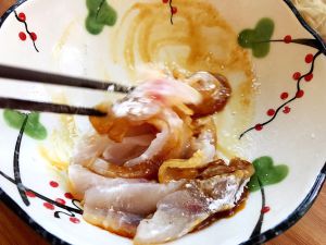 放入姜片、料酒、蛋清、盐适量,腌制20分钟。