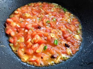 加入西红柿和鱼片下入所有调料翻炒煮沸