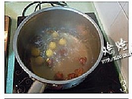 锅内加入1碗半的清水,将板粟和淮山先放进锅内,开大火煮开后转小火煮10分钟.
