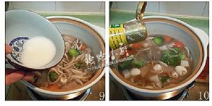 开中火煮5分钟,用淀粉勾芡。关火后滴入香油即可享用了。