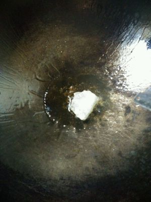 起油锅放,2匙油,油热了放一匙糖;