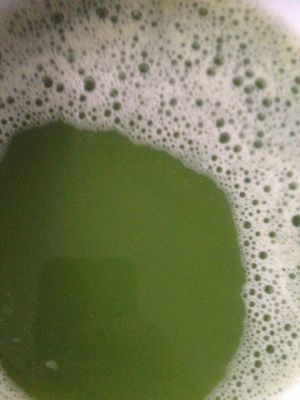 这是挤出来的青萝卜汁,味道好极了\^O^/很甜,有萝卜的辣。