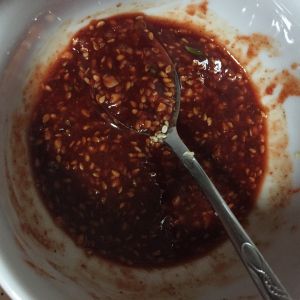 酱汁非常重要,可以根据个人口味调兑。我加了韩式辣酱,韩式烤肉酱,蜂蜜(没有可用糖代替),生抽,熟芝麻,胡椒粉,葱沫,蒜末,量根据鱼的量和个人口味调配。