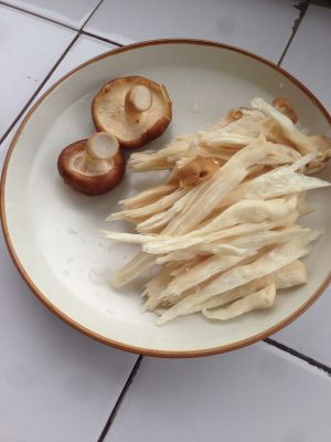 忘记拍照片了,把剩下的香菇,白菜等切丝(可随自己喜好随意组合),鸡蛋炒熟,与素菜丝,杏鲍菇翻炒均匀,出锅备用
