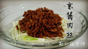 热锅内入玉米油,油热后倒入肉丝快速翻炒,变白即关火盛出备用。不用刷锅接着炒甜面酱,开火入油,油热倒入甜面酱,炒香变粘稠之后倒入过油的肉丝,快速翻炒,待肉丝均匀上色关火起锅。