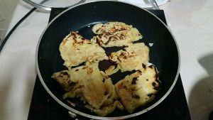 电饼铛上抹匀一点香油,然后煎。等到两面金黄就可以食用了。