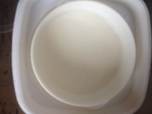 然后往小盆子里面倒入菌种,一般一包菌种可以做1000ml的牛奶,因为我一次喝不了那么多,所以我每次做250ml牛奶倒一小包菌种。