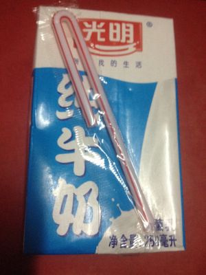 然后准备好纯牛奶和一包菌种。菌种网上超市都有卖,大概一块钱左右一包。