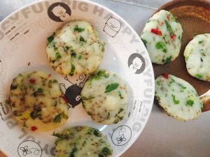 蒸熟的土豆压成泥,加两勺澳优能立多G4奶粉。