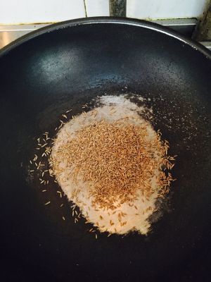 一勺孜然粉,一勺辣椒面,一勺耗油,翻炒均匀
