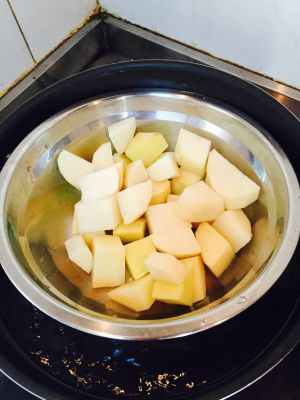 土豆去皮,切成小块,在烧开水的锅内蒸30分钟。